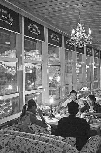 幾名青年在拉薩一個(gè)酒吧聚會(huì),窗外能夠清楚的看見布達(dá)拉宮。 吉碼攝