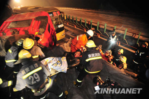 新華網(wǎng)武漢1月10日電(記者李鵬翔)湖北省交警總隊10日下午公布最新情況,9日晚發(fā)生在(武)漢十(堰)高速棗陽段的連環(huán)撞車事故中,6人因撞車死亡,1人情急之中跳橋身亡,14人受傷。