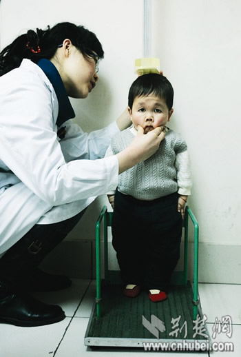 羅教授邊檢查邊說,吳康眨著眼睛專注地聽,聽到羅教授的診斷,他咧開嘴笑了,父母急切地問,“真的?”羅教授一指站在一旁的袖珍大學生陳巍,“你們看,這孩子治療一年就長了12厘米,要是有錢繼續(xù)治,起碼能長到1.6米!”