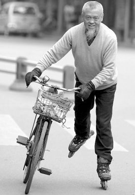 高永祿出生于1941年春天,屬蛇。用他自己的話講,自己出生的時候春意盎然,蛇類剛結(jié)束冬眠,神經(jīng)興奮,于是注定了他自己一輩子都是這副活潑性格。從前年開始,他迷上輪滑,還迷上邊滑邊跳舞。為了看望老母親,他從雙流滑到成都。昨日傍晚,看見溜著旱冰鞋提著菜籃子出去買菜的他,路過的人都親切地叫他一聲“老頑童”。