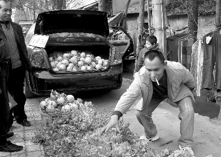 “新鮮蘿卜,1元錢3斤了哦!”一名男子站在蔬菜攤前叫賣,他就是別克車車主!笆袌(chǎng)上要接近1元錢1斤,這個(gè)蘿卜便宜多了,給我來(lái)幾斤哈!”“我也要……”由于價(jià)格便宜,菜也新鮮,過(guò)往市民路過(guò)此處紛紛駐足、掏錢買菜。