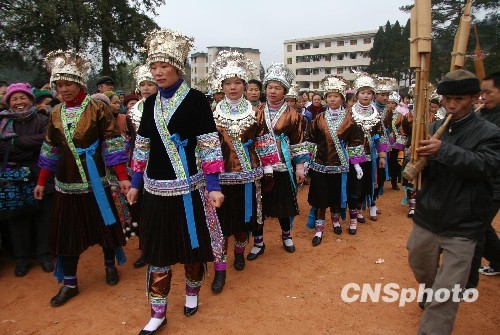 3月7日,廣西融水苗族自治縣安太鄉(xiāng)舉行慶祝“三八”國際勞動(dòng)?jì)D女節(jié)100周年活動(dòng)。來自該鄉(xiāng)近千名苗、侗等少數(shù)民族婦女通過吹奏蘆笙、跳踩堂舞、板鞋比賽、三足接力等形式慶祝自己的節(jié)日,吶喊聲、呼叫聲響徹山間,整個(gè)山寨成了他們歡樂的海洋。 中新社發(fā) 龍林智 攝
