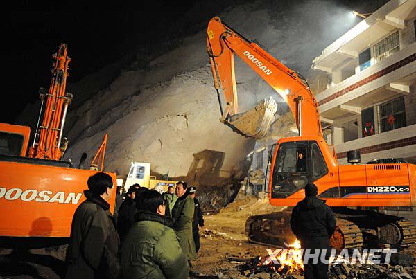 3月10日深夜,現(xiàn)場救援工作正在緊張進行。新華社記者 陶明 攝