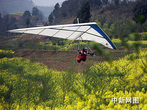 中新網(wǎng)丹棱3月12日電(劉忠俊)12日中午,有著民間“中國(guó)第一飛人”之稱的67歲衣瑞龍,自駕無動(dòng)力三角翼懸掛滑翔機(jī)成功飛越海拔1142米的四川丹棱老峨山。在三分鐘左右的飛行過程中,衣瑞龍一帆風(fēng)順成功降落在預(yù)定地點(diǎn)。