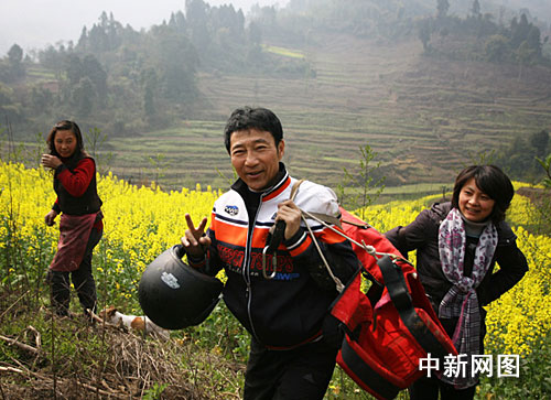 3月12日,衣瑞龍一早來到位于丹棱縣境內(nèi)的老峨山金頂起飛點(diǎn)開始起飛前的準(zhǔn)備工作。由于天氣原因,飛行推遲到中午12:20才開始,衣瑞龍敏捷穿上飛行衣,戴上風(fēng)鏡,踏上跑道。一陣助跑后,衣瑞龍借著風(fēng)速?gòu)睦隙肷巾樌痫w。在3分鐘的飛行中,衣瑞龍時(shí)而盤旋、時(shí)而俯沖,朝著預(yù)定著陸點(diǎn)飛去。