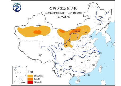 受冷空氣影響,22日08時(shí)至23日08時(shí),南疆盆地、甘肅中部的部分地區(qū)、內(nèi)蒙古中西部、寧夏大部、陜西北部、華北北部等地有揚(yáng)沙或浮塵天氣,其中,南疆盆地東部、內(nèi)蒙古中西部偏北的部分地區(qū)有沙塵暴,上述地區(qū)并有5~6級(jí)偏北風(fēng),陣風(fēng)風(fēng)力可達(dá)7級(jí)。
