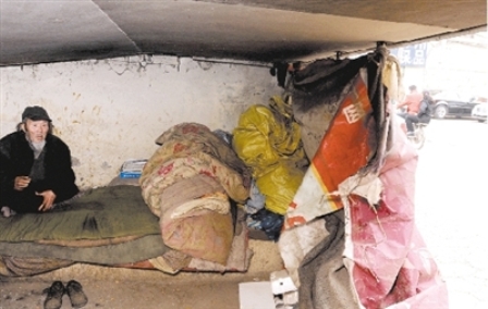 今年3月11日,劉醫(yī)生又到橋下看望二人,誰知這里已是面目全非。老魏的“小單間”不見了,老呂蜷縮在床上……