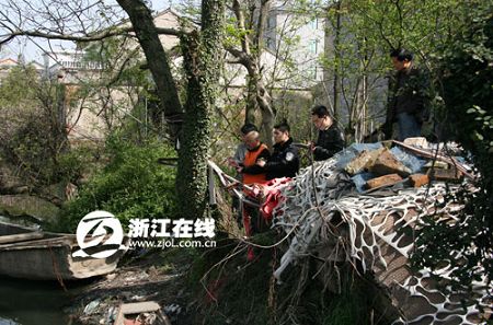 22日傍晚,魯公橋社區(qū)的村民方某在村后的小河里劃船,靠岸時(shí),發(fā)現(xiàn)水里浮上來(lái)一個(gè)紫紅色的包裹,用船槳?jiǎng)澙幌,竟然飄出了幾縷毛發(fā),方某趕緊報(bào)警。