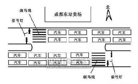 為驗證這一說法,記者來到了位于駟馬橋路的成都東站貨場——“雷人斑馬線”真的存在。這條“Z”字形的斑馬線缺口長達(dá)5米,要過馬路,必須從右邊的斑馬線走到路中間,再順著車流,走到左邊的斑馬線上。