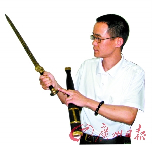 陳再榮:我沒(méi)有后悔過(guò),只是有時(shí)候因?yàn)閷?shí)在沒(méi)錢(qián),只好暫時(shí)停下來(lái)。這些年來(lái),我買(mǎi)了不少關(guān)于鑄劍方面的書(shū)自學(xué)鑄劍術(shù),也看了不少與劍有關(guān)的文章。讀這些書(shū),使我明白,劍是一種精神,是一個(gè)人的魂。(嚴(yán)建廣)