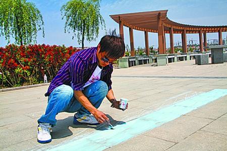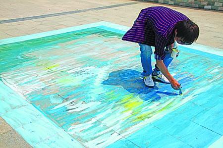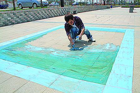 藍色粉筆,幾盒顏料,在畫師馬赫的畫筆下,能讓畫的水池“跳”出來。14日中午,畫師馬赫在臨沂涑河南街和狼牙王路交叉口的沿河廣場現(xiàn)場展現(xiàn)他的3D繪畫技能。