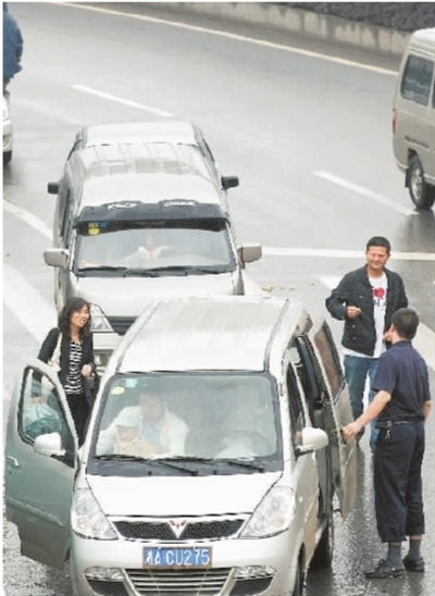 上午9時(shí)40分,在長沙市汽車北站,天下著大雨,的士很少。見記者在找的士,一位30多歲的中年男子打著雨傘迎了上來,當(dāng)?shù)弥浾呦肴プR(shí)字嶺后,這位男子表示距離太近,跑一趟不劃算,建議記者坐別的車。記者反問這位男子:短途不跑,難道只跑長途?這名男子笑了笑說,“做生意當(dāng)然要合算才做了,我們一般跑汽車南站和武廣高鐵長沙南站,一趟能賺70元左右。”見雨越下越大,記者又不是“合適”的乘客,這名男子轉(zhuǎn)頭鉆進(jìn)了旁邊牌號(hào)為湘A94157的小汽車。