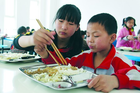 陳鈺嬌7歲的弟弟陳鑫是擂鼓小學(xué)一年級(jí)的學(xué)生,自從去年9月弟弟入學(xué)以來,陳鈺嬌就肩負(fù)起了照顧弟弟的責(zé)任。每天中午,她要帶著弟弟去餐廳吃飯。吃飯時(shí),兩人不舍得吃葷菜,只打素菜,最多也是打一份葷菜分著吃。