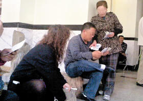 采訪中,絕大多數(shù)家長都是從號販子那里買的號!俺鲩T往左走,那有一堆人,你問他們后留個電話,明天就能給你號了!”患兒家長說。
