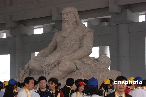 資料圖片:2009年5月20日,來自美國、加拿大、香港、澳門、臺灣等30多個國家和地區(qū)的華僑華人代表,在湖北隨州市共同拜謁了中華民族的始祖炎帝神農(nóng)。圖為來賓參觀炎帝神農(nóng)雕像并合影。 中新社發(fā) 張暢 攝
