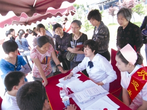 寧波康復(fù)醫(yī)院組織的廣場睡眠義診活動上,咨詢市民源源不斷 記者 王博 攝