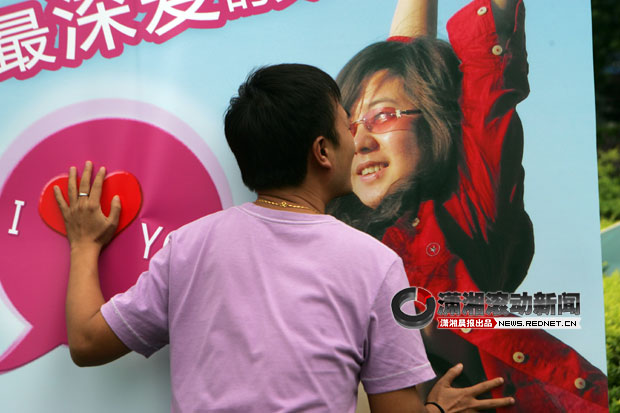 王樂親吻胡安萱的大幅海報。(圖/韓靜宇)