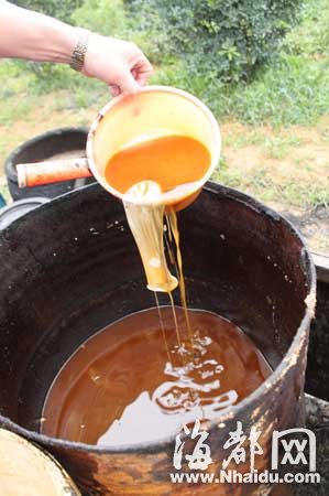 在福清城區(qū)、宏路、鏡洋、漁溪、東張等地的小飯館里收集泔水,運(yùn)到鏡洋鎮(zhèn)東風(fēng)村東林自然村一個(gè)偏僻的果園里加工成地溝油,然后又偷運(yùn)到當(dāng)?shù)匾恍┬★堭^里。經(jīng)過(guò)簡(jiǎn)單加工的地溝油被消費(fèi)者吃進(jìn)肚子……本網(wǎng)記者在當(dāng)?shù)貛孜粺嵝淖x者的幫助下,經(jīng)過(guò)數(shù)月暗訪,昨日,與鏡洋鎮(zhèn)工商所、鏡洋鎮(zhèn)派出所一起,將這個(gè)地溝油地下加工窩點(diǎn)端掉。