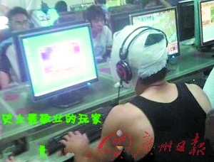 網(wǎng)友去了趟網(wǎng)吧,看見一位瘋狂玩家,紗布包住大半個(gè)頭,頭上卡著耳機(jī),身上穿著黑背心,目不轉(zhuǎn)睛地盯著屏幕玩網(wǎng)游。