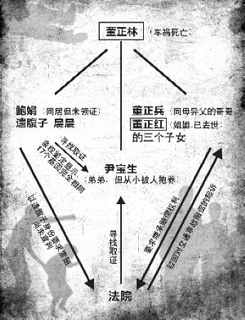 我打官司的目的,就是要為這個(gè)孩子正名,我不想讓孩子丟臉。”鮑娟昨天在法庭外說。來自安徽的她已是40多歲的年紀(jì),可在與南京人董正林同居后卻很快懷孕。不幸的是,就在她等待愛情的結(jié)晶時(shí),董正林卻在車禍中遇難。董正林同母異父的哥哥卻不承認(rèn)鮑娟腹中孩子的身份,他們先提起了道路交通事故索賠。而面臨絕境的鮑娟卻突然得知,董正林有個(gè)親生弟弟雖然早已被抱養(yǎng)改名換姓,卻仍然在附近生活。董的遺體已經(jīng)火化,在科學(xué)上,這是唯一能證明孩子身份的關(guān)鍵人物,于是她和法院一起展開了尋找……