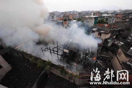 起火的是福州倉(cāng)山區(qū)蓋山鎮(zhèn)郭宅村一棟磚木結(jié)構(gòu)的民宅,共兩層樓,單層面積約500平方米,已有上百年歷史,平時(shí)里面只住著兩戶人家。