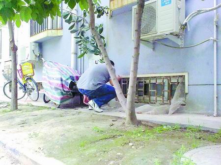 該樓上的一居民說,那名男子就在樓洞口東側(cè)不遠處的地下室。順著該居民手指的方向,記者找到了那個地下室窗戶,窗戶緊挨地面,一中年男子正蹲著對地下室內(nèi)的男子勸說,但沒有任何回應。