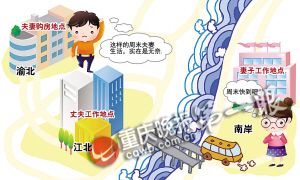 同住一個(gè)城市,感情也沒問題,小夫妻卻長(zhǎng)達(dá)一月不見面——自從將房子買到離工作單位較遠(yuǎn)的渝北后,劉方斌和妻子無奈當(dāng)起周末夫妻。