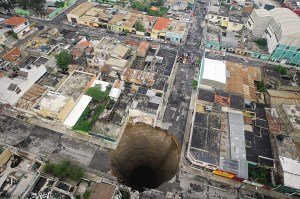 5月31日,危地馬拉城街頭出現(xiàn)一個約61米深的巨坑;6月4日,浙江衢州高速公路出現(xiàn)直徑8米、深度10米的大坑;6月4日,江西南昌市一處路面突然塌陷。而此前,四川成都、廣西來賓等地方也都出現(xiàn)過天坑……