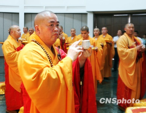 資料圖:5月29日,河南洛陽少林寺方丈釋永信為白馬寺印度風(fēng)格佛殿開光。 中新社發(fā) 王中舉 攝