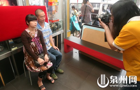 照相館拉開一塊紅布,阿鑫和阿晴并排坐在一起,目對鏡頭,表情有點緊張。“一、二、三!睅追{(diào)試,攝影師拍下了一張滿意的照片。