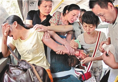昨日上午9:40,四川女孩阿婷(化名)在563路公交車上的沖動(dòng)之舉,嚇壞了車上乘客———為愁怨所傷的她悄悄用水果刀切開自己的左腕,滿手鮮血引起短暫騷動(dòng)。緩過神的人們迅速展開一場(chǎng)自發(fā)的救助行動(dòng)。