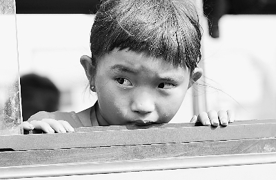 河南南陽(yáng)丹江口庫(kù)區(qū),搬遷車(chē)上的兒童扭頭回望家鄉(xiāng)的方向。沙 浪攝(人民圖片)