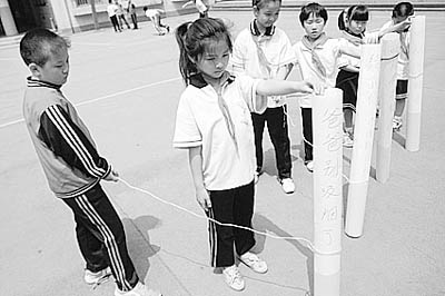 5月31日,濟(jì)南市小辛莊小學(xué)的學(xué)生表演自編的校園情景劇宣傳戒煙。崔健攝(資料圖片)