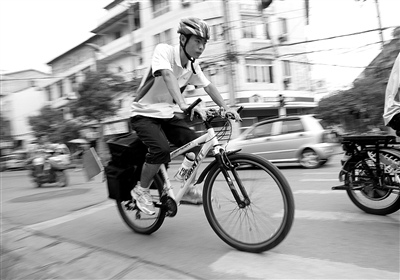 昨日,在蔡家田一家旅社,記者見到了楊帆。楊帆說,早在6月初,自己開始擬訂騎行上?词啦⿻挠(jì)劃:確定路線、購置裝備。他計(jì)劃用12天時(shí)間完成1300多公里的行程。在途徑枝江時(shí),楊帆迷路浪費(fèi)了1個(gè)多小時(shí)。天氣漸熱,他還要經(jīng)受高溫烈日的“烤”驗(yàn)。一個(gè)人騎行,最大的敵人就是孤獨(dú)。這時(shí),楊帆就會找路邊的西瓜攤停車,跟瓜販們聊聊天。楊帆將平時(shí)積攢下的2000余元作為路費(fèi),晚上就睡小旅館。