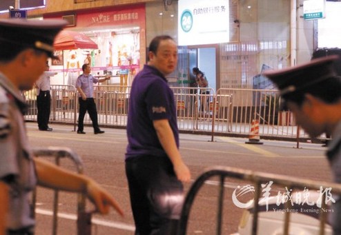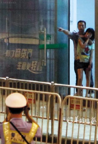 廣州越秀警方昨晚通報,昨晚8時許,湖北籍男子謝某(男,38歲)在越秀區(qū)站南路持剪刀搶劫一名男性路人后遭到警方追捕。在逃至站前路某自助銀行門口時,被民警和群眾包圍,又持剪刀劫持了一名女路人。警方迅速調(diào)集特警、刑警、便衣民警等警力將其團團包圍,并派出談判專家對其進行政策攻心,但均未奏效?簥^失控的歹徒不斷持剪刀捅傷女事主致多處出血。