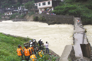 直接過河營救?不行,斷橋隨時可能垮塌,橋毀人亡。用沖鋒舟?一下水就要被激流沖走。怎么辦?