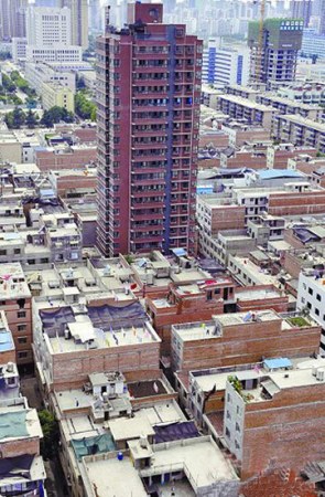 在西安市南郊電子城一個(gè)被稱作“北山門村”的城中村里,一座赭紅色的23層高樓煞是耀眼。它修建3年來(lái)如今眼看就要竣工了,當(dāng)?shù)氐南嚓P(guān)部門對(duì)此仍視而不見,無(wú)人過(guò)問(wèn),沒(méi)有任何報(bào)批手續(xù),成了真正意義上的“監(jiān)管真空”。該樓被當(dāng)?shù)孛襟w爆炒為“史上最牛的農(nóng)民大廈”,也有人稱它為“史上最高的違章建筑”。
