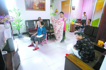 16日上午,記者在現(xiàn)場(chǎng)看到,該“養(yǎng)老院”位于豪俊閣的12幢2樓,名為“夕陽(yáng)紅溫馨園”,是由一套面積約100平米的三室一廳套房隔離出來(lái),改造成4個(gè)房間。在這4個(gè)房間內(nèi)共鋪設(shè)了13張單人床(包括一張護(hù)工的床),每個(gè)房間安裝有空調(diào)、電視、電扇、桌椅等,一群老人圍坐在“客廳”里聊天。記者以顧客身份上前咨詢,“老人都有專(zhuān)人照顧,現(xiàn)在只剩一個(gè)床位了”。一位護(hù)工介紹到,該“養(yǎng)老院”開(kāi)辦已有半年,根據(jù)老人的生活自理能力收費(fèi),每人每個(gè)月1000元起,目前已有11位老人住在這里,他們中的大多數(shù)屬于在生活上不能自理,子女又因?yàn)楣ぷ髟虿荒苷疹櫪先,所以只好把老人送到這里來(lái)。