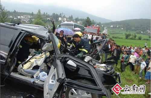 據(jù)初步調(diào)查,當(dāng)天由陳某駕駛一輛皮卡車從下關(guān)往麗江方向行駛,車上載有6人。行至事發(fā)地點(diǎn)時與迎面而來的一輛宇通牌大型普通客車正面相撞,導(dǎo)致大客車駛出路面,側(cè)翻在路西邊,皮卡車橫停在路上。事故中,陳某等兩人當(dāng)場死亡,乘車人張某于當(dāng)日17時50分搶救無效死亡,14人不同程度受傷。