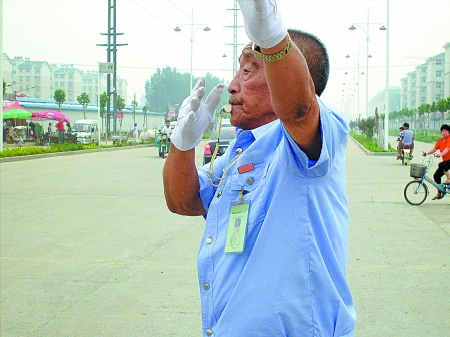 郭岐山原是鶴壁煤炭系統(tǒng)勞模、先進工作者。30年前,當(dāng)了28年鉚焊班長的他退休了,因擁有豐富的經(jīng)驗和精湛的技術(shù),許多私營企業(yè)紛紛上門高薪聘請,都被他拒絕了,因為他有了新的興趣點。一次老人去買菜,路過離家不遠的一個丁字路口,這里被堵得水泄不通。老人把買菜的事拋到腦后,開始疏導(dǎo)起交通來,一番大汗淋漓換來群眾嘖嘖稱贊。此后,老人就常來“捋順”道路。交警隊的領(lǐng)導(dǎo)聽說后,親自來表示感謝,并且要每月給老人200元,老人拒絕了,說只想為社會做些力所能及的事情。交警的領(lǐng)導(dǎo)被感動了,答應(yīng)了老人的請求,給他配備了袖章、小口哨、對講機。從此,他每天上道熱心“捋路”,不想這一“捋”就是30年。