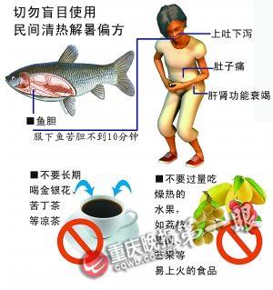 天熱易上火,好心的媽媽聽說魚苦膽可以清熱解暑,給8歲的女兒喂了顆魚苦膽,結(jié)果導(dǎo)致女兒中毒致急性腎衰竭。經(jīng)兒童醫(yī)院搶救,其血液被過濾(即將血液引出體外透析凈化、濾去毒素等致病物質(zhì))了三次后,才終于死里逃生。