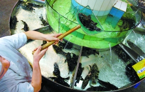 “掉包計”儼然成了一些見利忘義飯館賣魚的潛規(guī)則。記者 李繼輝攝