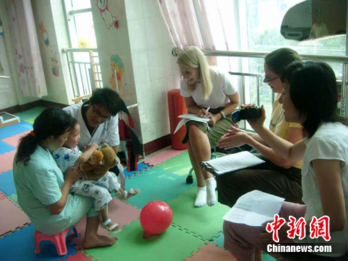 日前,兩名美國慈善組織工作人員來到河南汝州市金庚醫(yī)院,看望了腦癱康復(fù)兒童,并為39名腦癱康復(fù)孤兒辦理了出國收養(yǎng)手續(xù)。 (記者 李金輝 通訊員 桂焱煒 李偉恒)