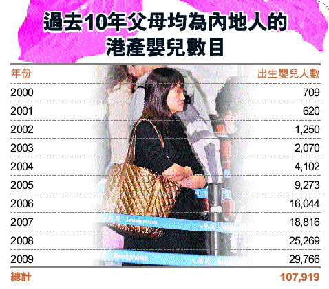事實上,自終審法院因“莊豐源案”于2001年頒令內(nèi)地夫婦在港所生子可享有居港權(quán)后,10年來,這類“港生孩”由2001年的620人,增至去年29,760人,這47倍增速的背后,見證了赴港生子的瘋狂。