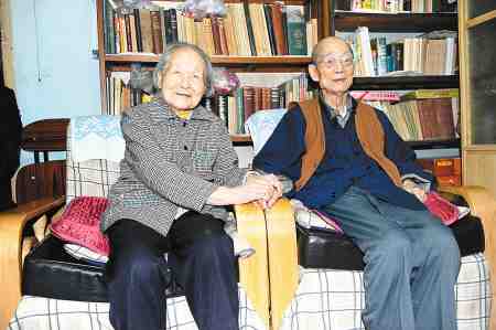百歲老夫婦張劍霄和李兢淑。記者 翟小雪 攝