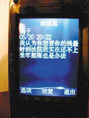 劉某給王霞發(fā)的短信。(注:王霞將手機中劉某的名字存為“騙子”)