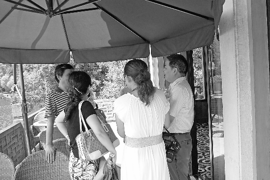 來(lái)到19年前跳水救人的現(xiàn)場(chǎng),項(xiàng)先生(右一)依然很低調(diào)。他不愿正面面對(duì)鏡頭,這是本報(bào)記者偷拍下的一張照片。