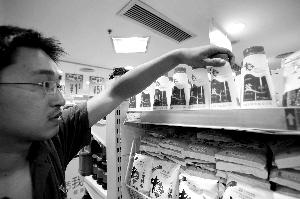 昨天,崇文門新世界商場地下超市里,已經(jīng)擺上了一排白底藍(lán)蓋的瓶裝“無碘精制鹽”,售價(jià)為2.4元,不過市民似乎對其沒有太多注意,買的人并不多。