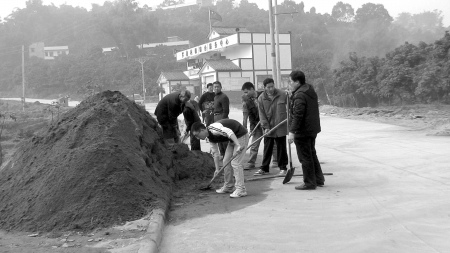 朱繼宏(前彎腰鏟沙者)生前工作照