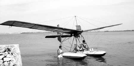 杜紅衛(wèi)自制的飛機(jī),在湯遜湖滑行了兩圈。 記者 鄧輝 攝